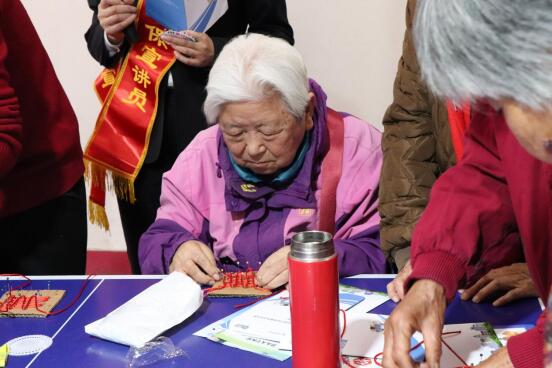 参加活动的老同志们在专业老师的指导下,绕绳、打结、编织,相互协作,其乐融融,通过编制一个个精美的中国结来表达对美丽中国的深情热爱、表达对未来幸福生活的美好祝愿和期盼,活动得到了老同志们的一直好评。